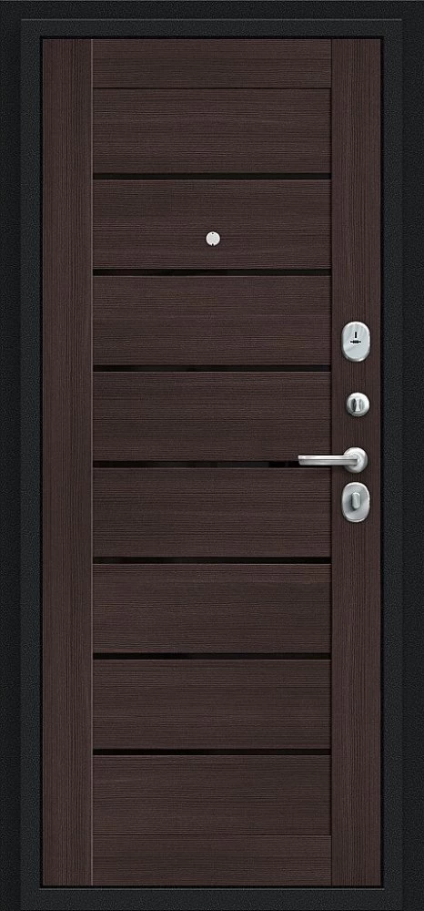 Надежная входная Дверь Браво Техно Букле черное/Wenge Veralinga премиум класса по цене 30 857 руб. Большая толщина стали защитит от проникновения в ваш дом, квартиру или коттедж. Используется очень качественная фурнитура: замки, цилиндры, ручки, защелки. Покрытие и отделка двери изготовлено под внимательным контролем производителя. Дверь имеет долгий срок службы и гарантию.