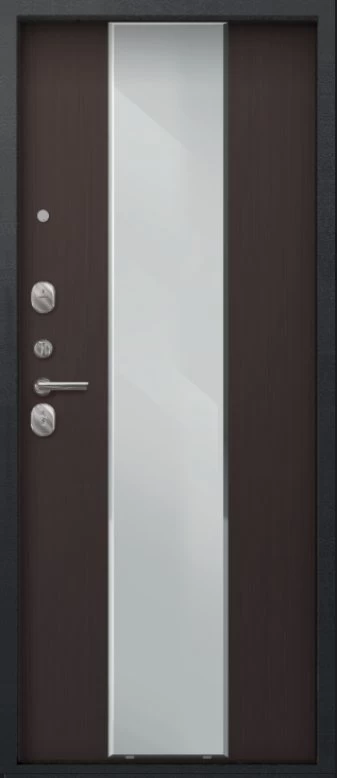Надежная входная Дверь A-04 черный сатин - лиственница тёмная зеркало премиум класса по цене 33 607 руб. Большая толщина стали защитит от проникновения в ваш дом, квартиру или коттедж. Используется очень качественная фурнитура: замки, цилиндры, ручки, защелки. Покрытие и отделка двери изготовлено под внимательным контролем производителя. Дверь имеет долгий срок службы и гарантию.