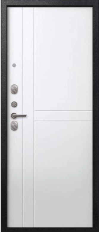 Надежная входная Дверь V-06 Черный муар - Белый премиум класса по цене 38 357 руб. Большая толщина стали защитит от проникновения в ваш дом, квартиру или коттедж. Используется очень качественная фурнитура: замки, цилиндры, ручки, защелки. Покрытие и отделка двери изготовлено под внимательным контролем производителя. Дверь имеет долгий срок службы и гарантию.